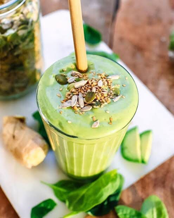 - Campurkan semua bahan (kecuali es batu), setelah itu blend hingga tercampur rata dan halus.